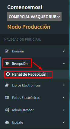 Hacer clic en Recepción y seleccionar Panel de recepción.